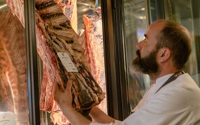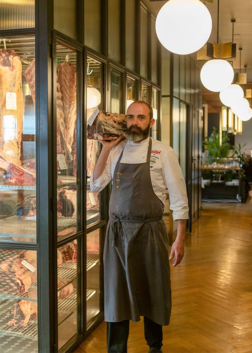 Ha due grandi passioni: la qualità delle materie prime e la cura nella selezione dei vini. È proprietario di un’importante cantina che produce 65.000 bottiglie, perlopiù di vini rossi locali.