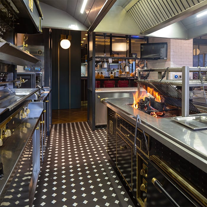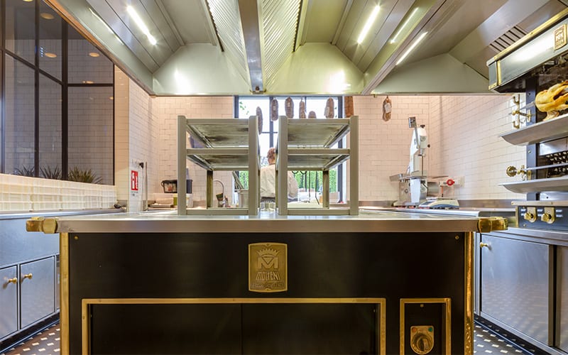Le due cucine del Campamac sono le vere protagoniste: immersi in un ambiente straordinario, fanno bella mostra di sé 2 Molteni e un Rôtissoire dello stesso produttore francese.