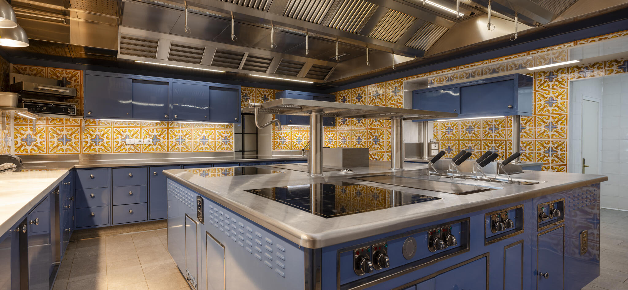 As the Executive Chef Paolo Lavezzini explains: "We wanted to bring a restaurant to Florence that focused on fish, the sea, and the Italian coastline. In just 8 months, we managed to completely transform the space, creating the show kitchen, Onde, featuring a stunning Molteni. We chose a blue reminiscent of grey - a specific RAL color, Pigeon Blue - crafting an environment that speaks of the sea with discretion and elegance.''